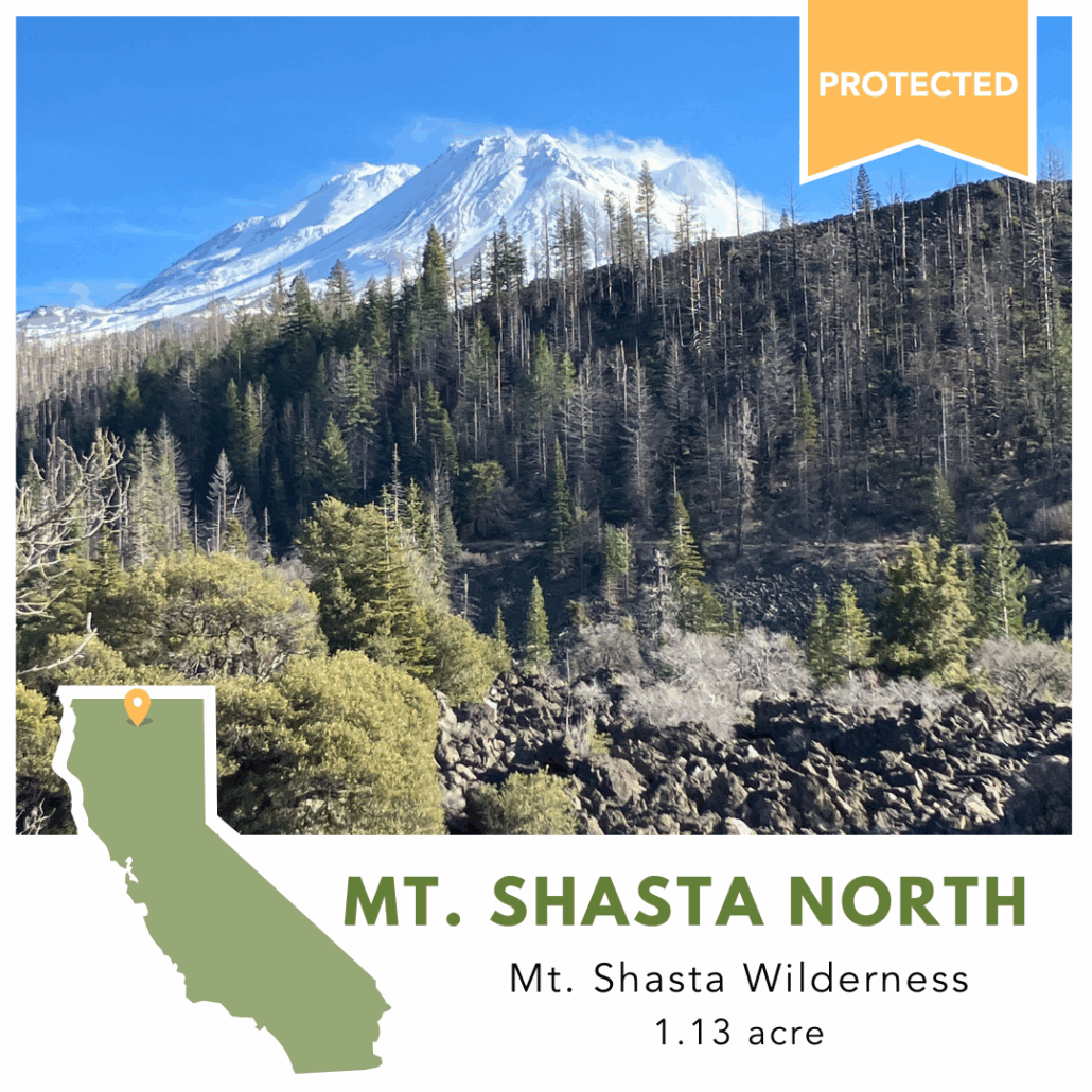 The Wilderness Land Trust recently acquired a 1 acre inholding within the Mount Shasta Wilderness of northern California. You may be wondering why bother protecting one acre within the almost 37,000 acre wilderness area? But every inholding, no matter their size, is a tear in the fabric of wilderness protection.
